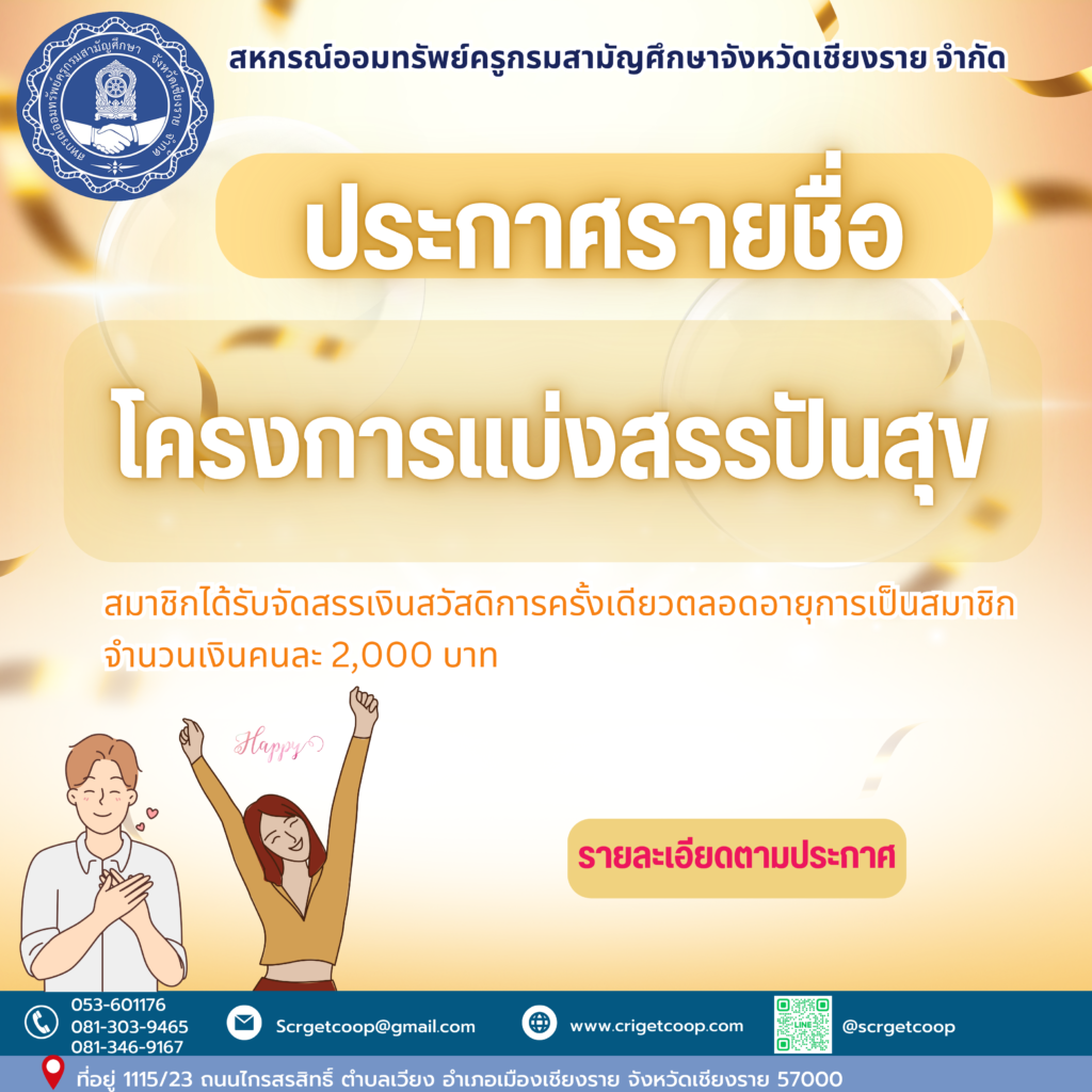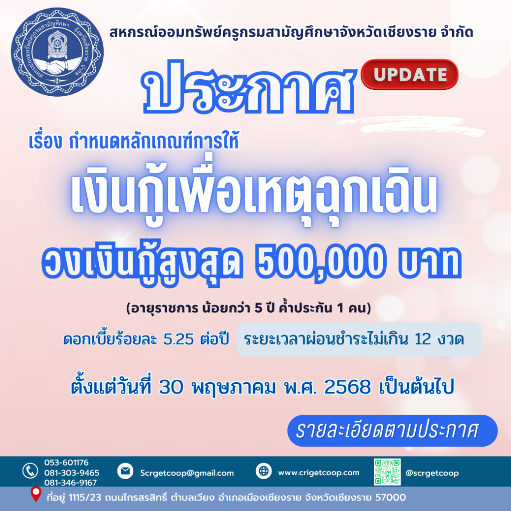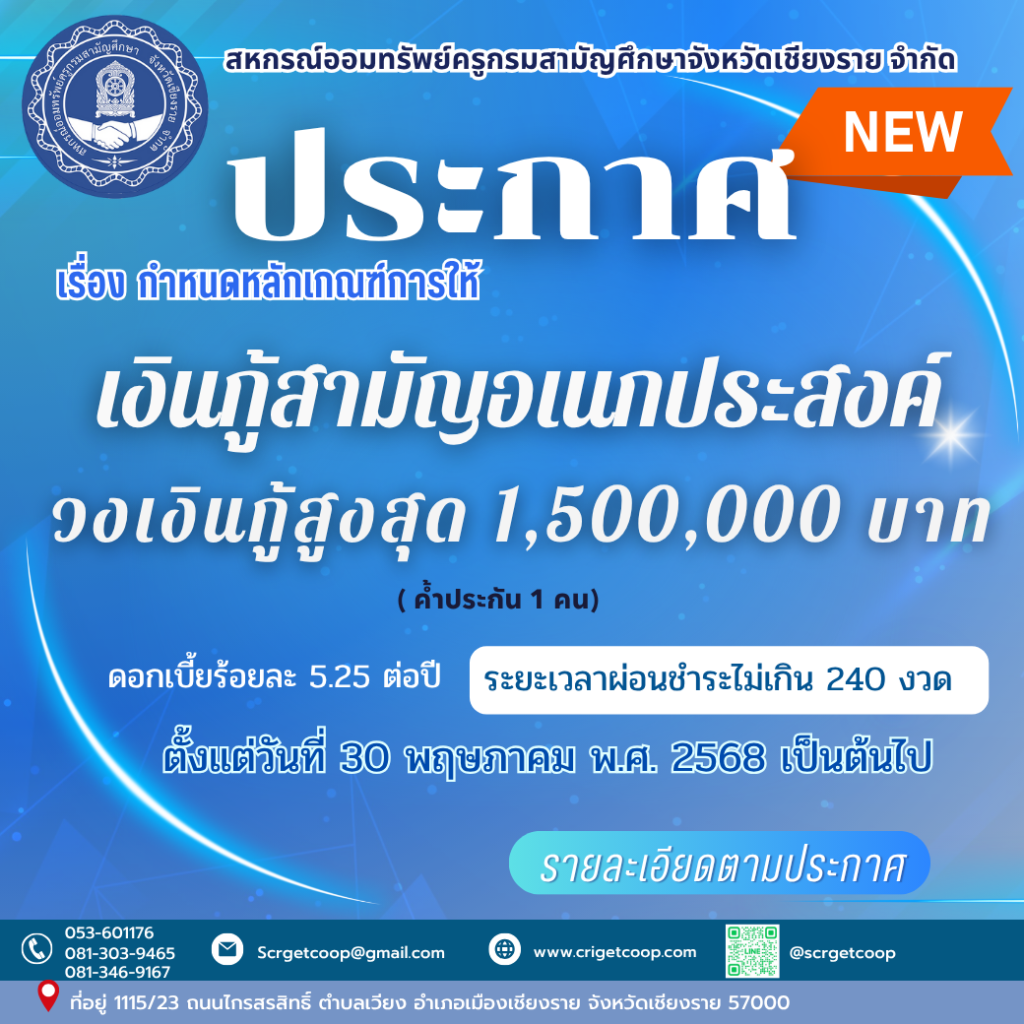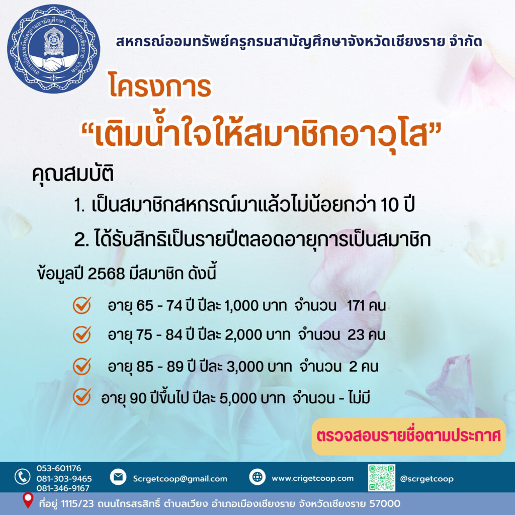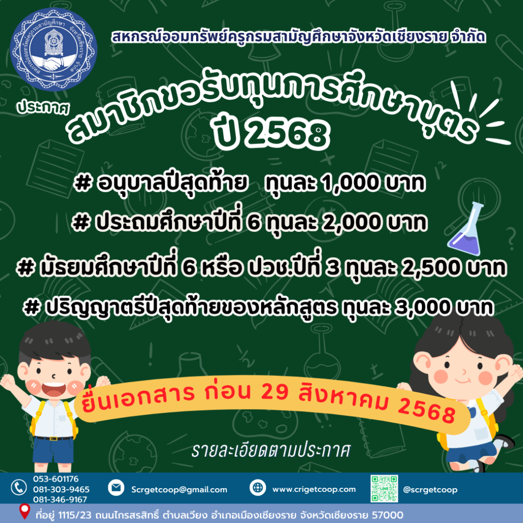 ประกาศ เรื่อง การรับสมัครสมาชิกสมาคมฌาปนกิจสงเคราะห์สมาชิกสหกรณ์ออมทรัพย์ข้าราชการกระทรวงศึกษาธิการจังหวัดตาก จำกัด (สส.ศธ.ตก) มิถุนายน 5, 2568